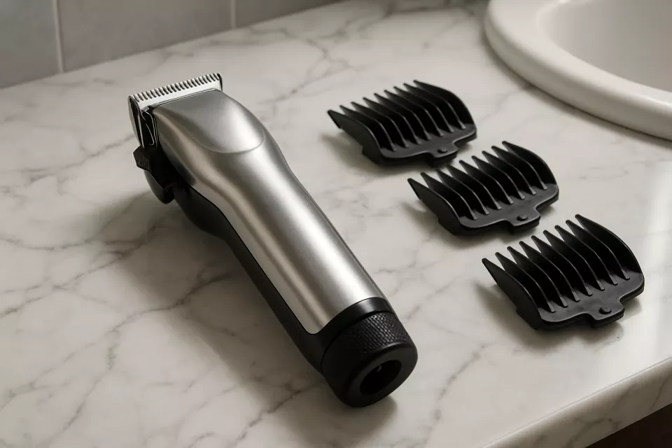 Un buen cortapelos incluye al menos 8 peines guia con longitudes de 1,5 a 25 mm. Los peines de plastico rigido son mas precisos que los flexibles porque no se deforman al presionar contra la cabeza. Algunos modelos premium usan sistema de ajuste sin peines: una rueda giratoria que modifica la longitud de 0,5 a 3 mm directamente en la cuchilla. Esto es ideal para degradados precisos sin cambiar de peine.